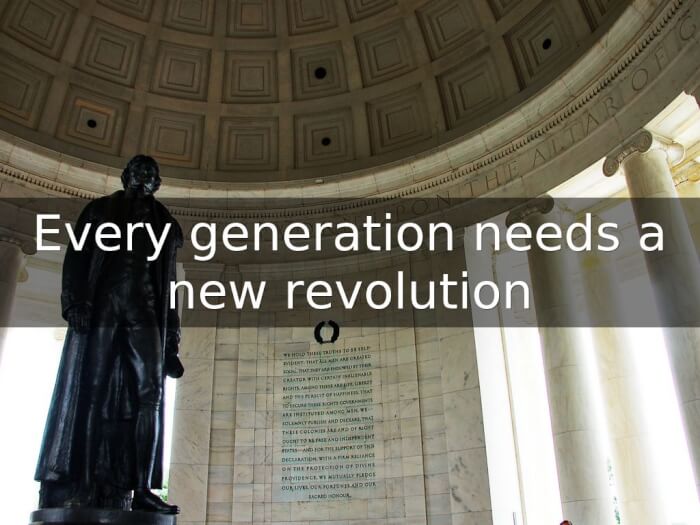 I hold it that a little rebellion now and then is a good thing, and as necessary in the political world as storms in the physical…It is a medicine necessary for the sound health of government. – Thomas Jefferson, 1787