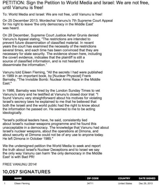 On March 30 2015, Vanunu fired this reporter as a supporter and ended the Petition to World Media and Israel: We are not free, until Vanunu is free! at 10,057 signatures.