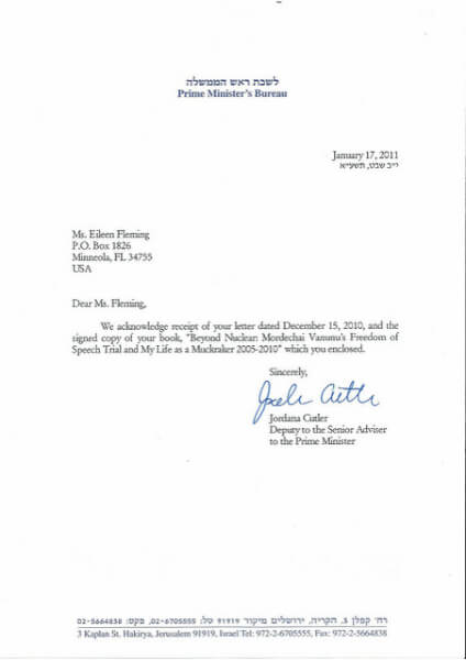 I am asking the committee to remove my name from the nominations…I cannot be part of a list of laureates that includes Simon Peres…Peres established and developed the atomic weapon program in Dimona in Israel…Peres was the man who ordered [my] kidnapping…he continues to oppose my freedom and release…WHAT I WANT IS FREEDOM AND ONLY FREEDOM….FREEDOM AND ONLY FREEDOM I NEED NOW.