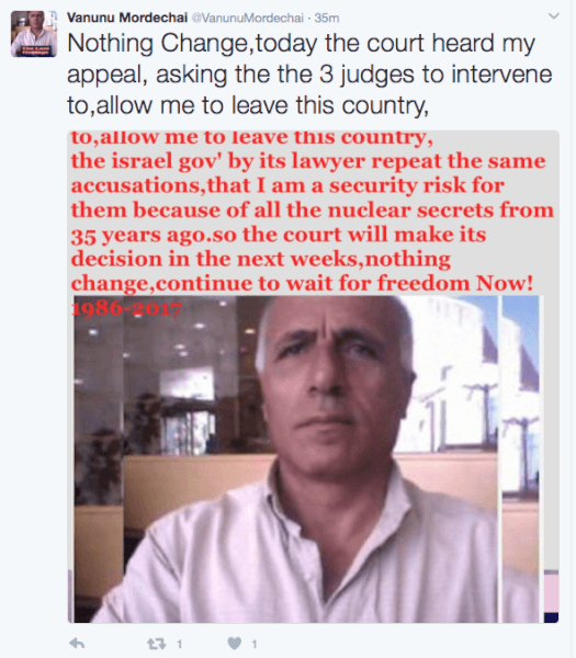 Comment (1) on “Mordechai Vanunu Reports Supreme Court Ruling at Twitter”
