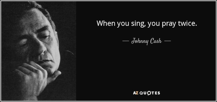 St. Augustine was the first to note, “He who sings prays twice” and Johnny Cash tweaked it, “When you sing, you pray twice.”