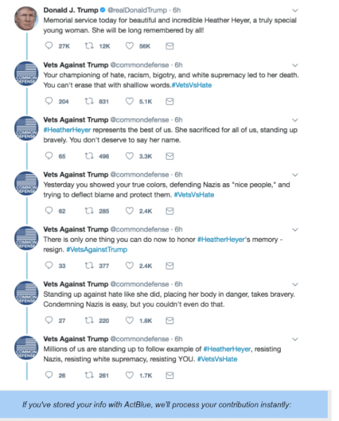 This is apparently what sent Trump over the edge. We told him to condemn the Nazis that murdered Heather Heyer in cold blood, which should be an easy task for the world’s most powerful person.