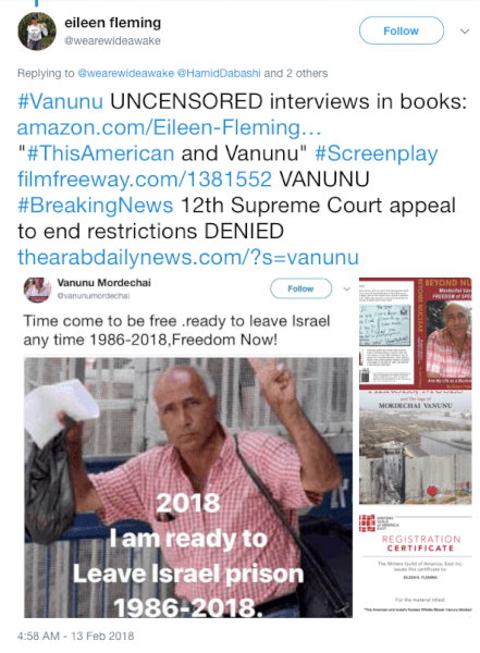 Eileen Fleming produced the UNCENSORED “30 Minutes with Vanunu” Mordechai, Israel’s nuclear whistleblower
