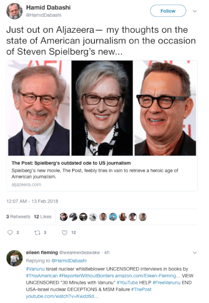 Spielberg’s “The Post” and This American and Israel’s Nuclear Whistleblower VANUNU Mordechai