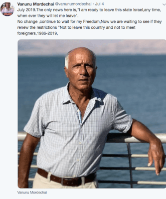 Vanunu’s struggle for freedom from Israel continues at Facebook and Twitter.