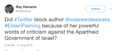 Then as usual I checked the visit count and when I learned over 500 ‘readers’ had visited within seconds of publication; my curiosity led me to log back in to Twitter only to discover my account –eileen fleming @wearewideawake was no longer visible: