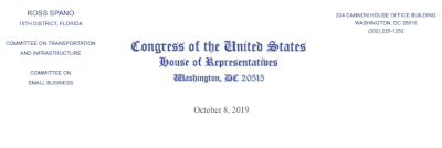 Compelled by the transcript of Mr. Trump’s Ukraine phone call and the whistleblower’s statement, this reporter immediately contacted Senators Marco Rubio, Rick Scott, and House Representative Ross Spano to support the impeachment INQUIRY.