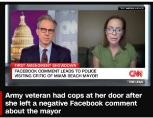“The First Amendment prohibits the government from using the coercive power of the State to suppress political dissent,” said ADC National Legal Director Jenin Younes. “Here, the mayor and police chief sent law enforcement officers to the home of a Miami Beach resident, intimated that her speech could subject her to punishment, and ordered her not to post such content. This kind of unlawful action chills speech, because most people will stay silent rather than risk future punishment. That is exactly what the First Amendment sought to prevent, and why we are filing this lawsuit.”